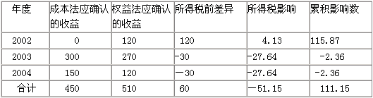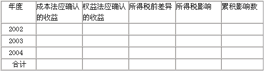假定乙公司除实现的净利润(或净亏损)和分配利润以外,无其他所有者权益变动,乙公司适用的所得税税率为15%。 (2)甲公司从2005年1月1日起,所得税核算由应付税款法改为债务法,并采用追溯调整法进行处理。 假定除上述各事项外,无其他纳税调整事项;除所得税以外,不考虑其他相关税费。 要求: (1)计算甲公司因上述会计政策变更每年产生的累积影响数。 成本法改权益法累积影响数计算表