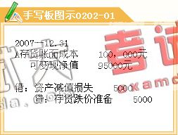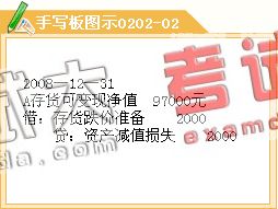 假设2008年年末,A存货的种类和数量、账面成本和已计提的存货跌价准备均未发生变化,2008年年末,A存货的可变现净值为97 000元,计算出应计提的存货跌价准备为3 000元(100 000—97 000)。由于A存货已计提存货跌价准备5 000元,因此,应冲减已计提的存货跌价准备2 000元(5 000—3 000)。