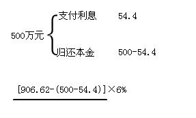 1. 分摊未确认融资费用=〔906.62-(500-54.40)〕×6%=27.66(万元)