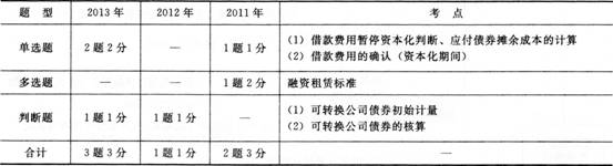 从历年考试情况来看,本章重点内容是普通债券和可转换公司债券的核算、融资租赁的判断标准及承租人的有关核算、专门借款及一般借款资本化金额的确定等。