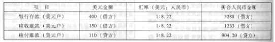 (2)将20000美元存款兑换为人民币存款,兑换当日汇率为:买价1美元:8.1元人民币,卖价1美元=8.3元人民币,当日市场汇率为l美元=8.2元人民币。