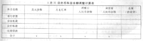 (2)编制2008年。1月3l习外币科目余额调整计算表(填人下表),并编制期末汇兑差额的会计分录。