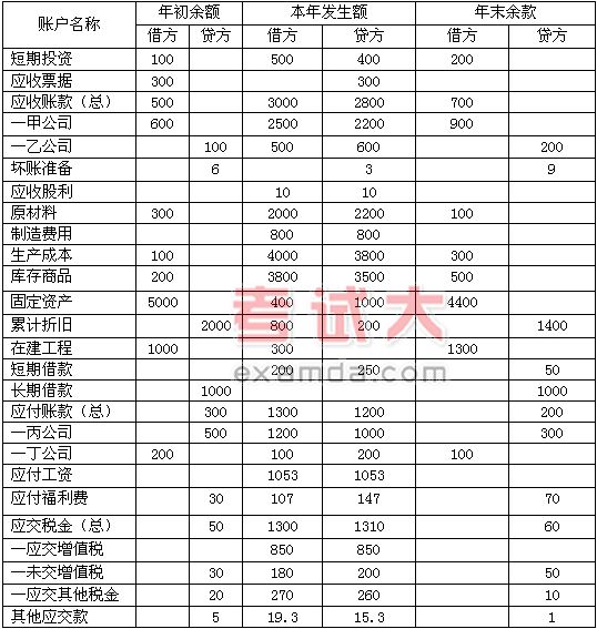 (1)资产、负债类部分账户年初,年末余额和本年发生额如下(单位:万元):