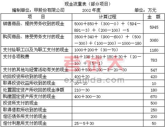 (2)填列该公司现金流量表所列示项目的金额(现金流量表见答题纸)(2003年)