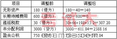 (3)填列甲公司2004年12月31日资产负债表相关项目调整中各项目的调整金额(调整表见答题纸第10页;调增数以“+”表示,调减数以“-”表示)。
