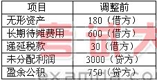 (5)2002年12月31日,A公司资产负债表相关项目调整前金额如下: