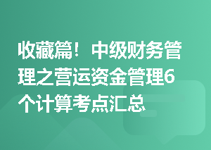收藏篇!中级财务管理之营运资金管理6个计算考点汇总