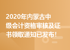 2020年内蒙古中级会计资格审核及证书领取通知已发布!
