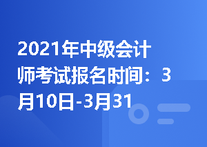 2021年中级会计师考试报名时间:3月10日-3月31日!