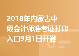 2018年内蒙古中级会计师准考证打印入口9月1日开通