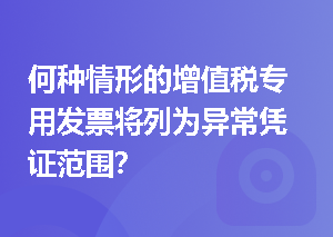 问:何种情形的增值税专用发票将列为异常凭证范围?答:根据《国家税务总局关于异常增值税扣税凭证管理等有关事项的公告》(国家税务总局公告2019年第38号)规定,一、符合下列情形之一的增值税专用发票,列入...