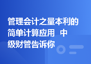 管理会计之量本利的简单计算应用 中级财管告诉你