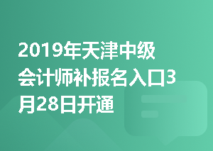 根据广大考生要求,2019年天津中级会计师报名新增一天补报名,补报名入口在2019年3月28日上午10:00至下午5:00开通,开通时间只有一天,考生必须在当天内登陆“全国会计资格评价网”完成网上报名...
