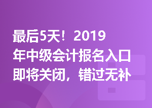 最后5天!2019年中级会计报名入口即将关闭,错过无补报名!
