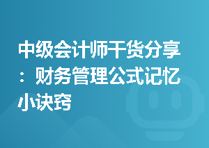 中级会计师干货分享:财务管理公式记忆小诀窍
