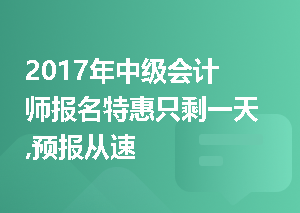 2017年中级会计师考试报名时间为2017年3月1日-31日,报完名的考生们一定要抓紧时间备考了哦!如果你不想自己看书学习,如果你自制力很差,但是又很想一次通过中级会计师考试,那你必须得报个辅导培训班学习啦!2017年中级会计师报名特惠只剩一天,预报从速哦! 2017年中级会计师报名特惠价格: 高端班立减270元原价1250元现仅980元 全科取证班立减170元原价850元现仅680元; 2017年中级会计师全科取证及高端班特色: 1、1+1双讲师授课,锁定90%常考点 2、每科