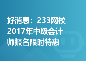 全国各地2017年中级会计师考试报名入口将于3月31日关闭,在报名最后阶段,233网校推出中级会...