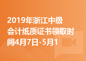 2019年浙江中级会计纸质证书领取时间4月7日-5月15日