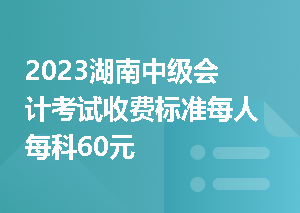 根据湖南省财政厅发布的《2023年度全国会计专业技术中级资格湖南考区考试公告》得知,2023湖南中级会计资格考试收费标准为每人每科60元。【2023湖南报考专题|报名照片处理|报考信息查询|报名模拟系...
