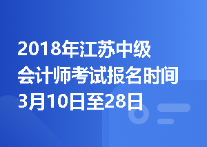 2018年江苏中级会计师考试报名入口开通时间:2018年3月10日至28日,资格审核时间:201...