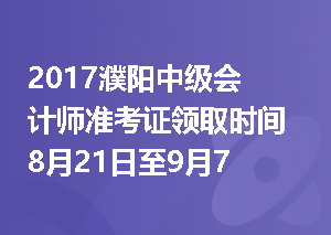 2017濮阳中级会计师准考证领取时间8月21日至9月7日