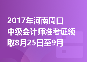 2017年河南周口中级会计师准考证领取8月25日至9月7日