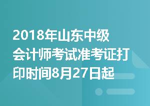 2018年山东中级会计师考试准考证打印时间8月27日起