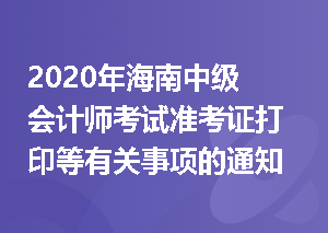 2020年海南中级会计师考试准考证打印等有关事项的通知