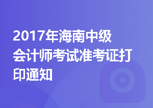 2017年海南中级会计师考试准考证打印通知