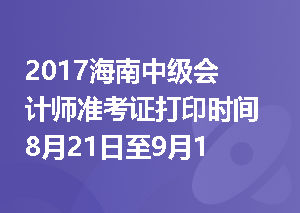 2017海南中级会计师准考证打印时间8月21日至9月10日