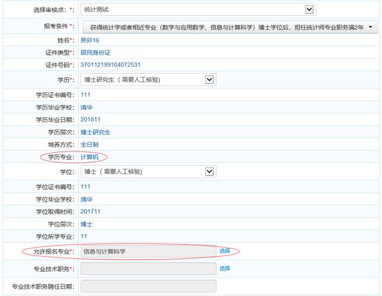 点击【下一步】按钮,进入报名信息维护页面,填写报考信息。