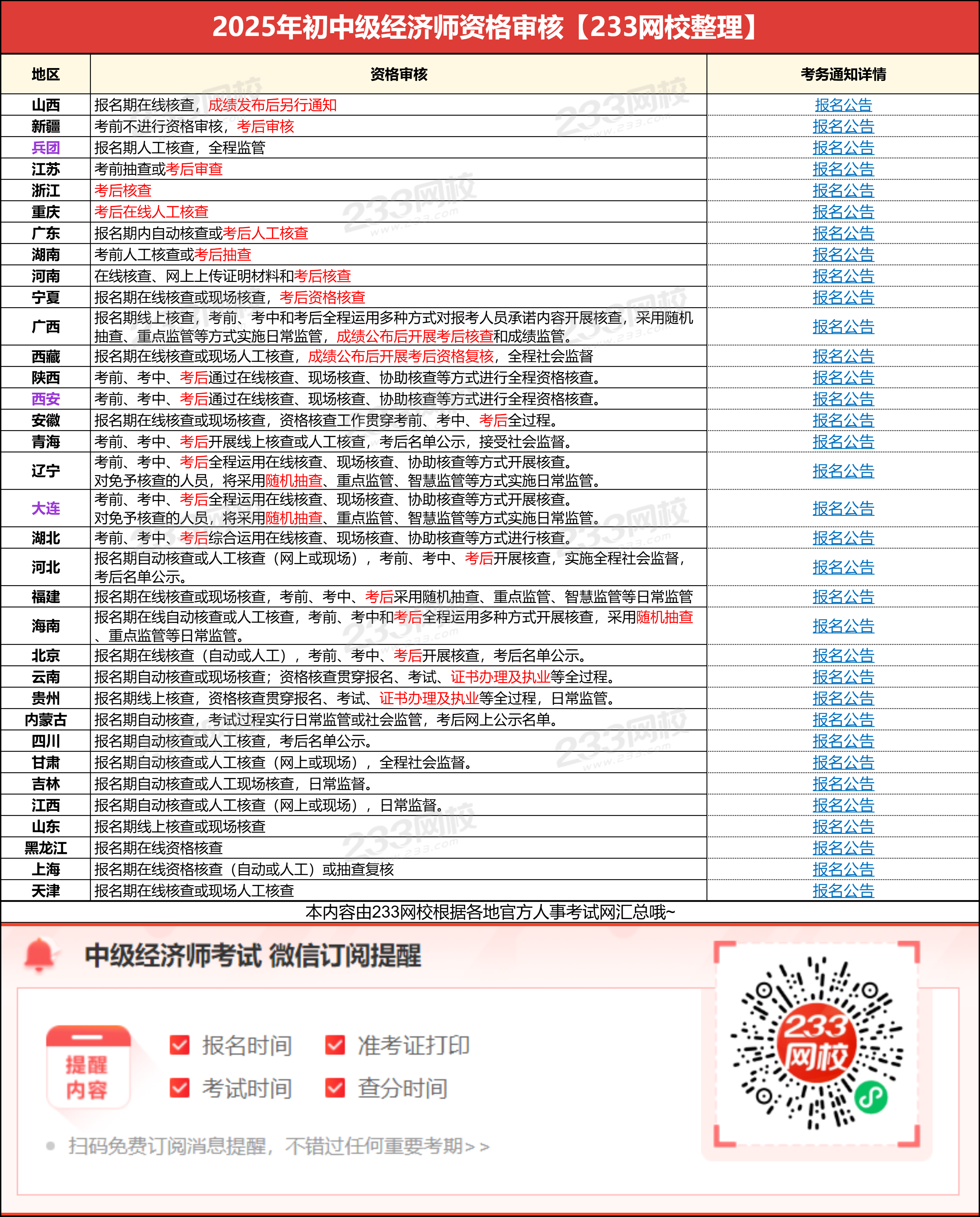 2025年中级经济师报名审核方式,各省不同,为了方便大家查看,梳理了2025年中级经济师报名审核方式表,仅供参考。
