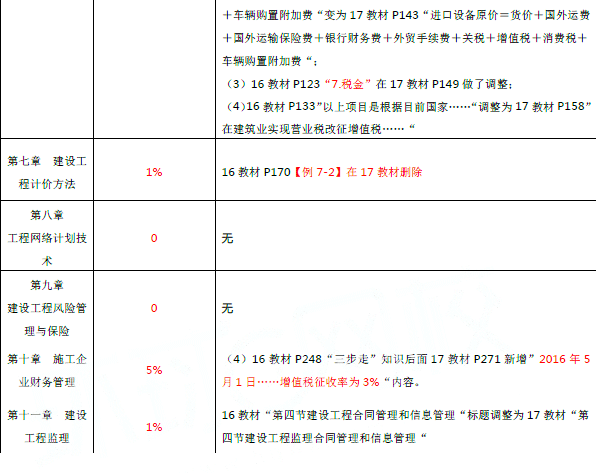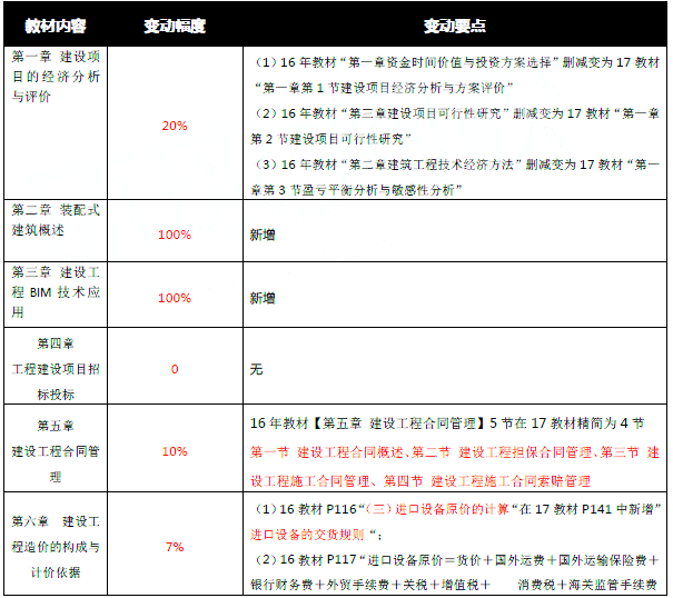 中级建筑专业相对来说是变化比较大的科目,整体变化幅度在30%左右,主要变化在于营改增新政实施后一些税种、涉及到税金的地方会有变化。新增第二章、第三章内容,原来教材第四章内容删除。新课试听入口>>