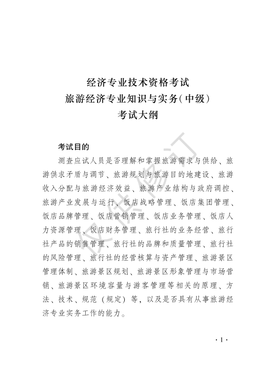 2019年中级经济师《旅游专业知识与实务》考试大纲: