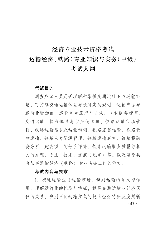 2019年中级经济师《铁路运输知识与实务》考试大纲: