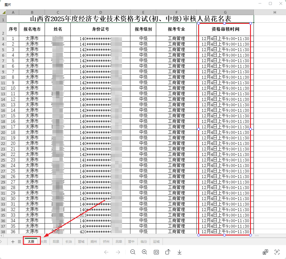 额外注意:太原市考生的审核时间是明确固定的,请务必在审核人员名单中,找到自己的名字,确定好时间!