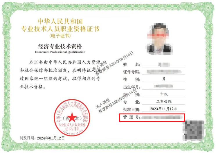 2025年初中级经济师电子证书已经可以下载啦,证书上的【管理号】就是证书编号!如果你在个税抵扣、单位职称补贴、升职加薪时,需要填写证书编号,则可以复制电子证书上的【管理号】。