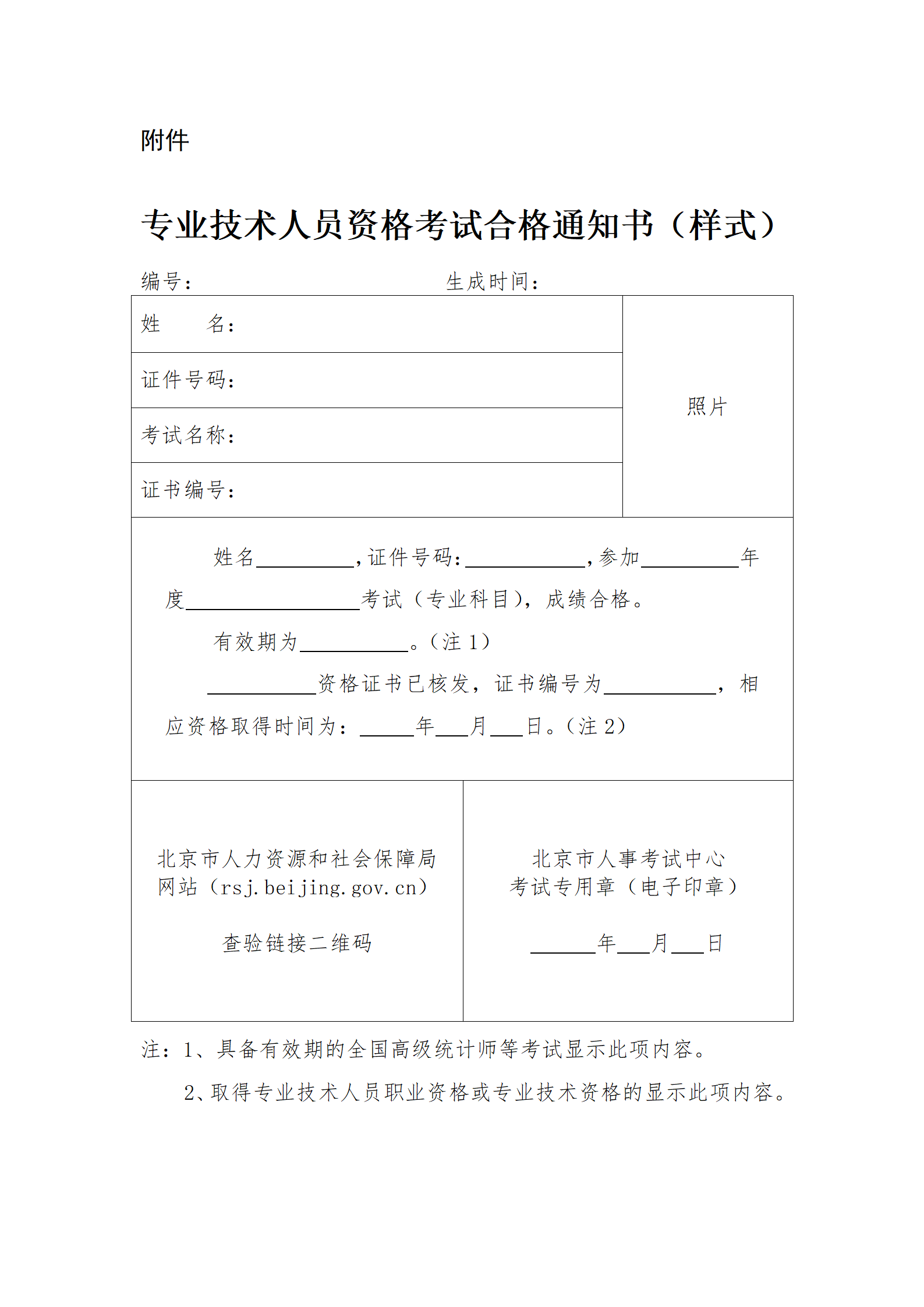 公告原标题:北京市人力资源和社会保障局关于试点推行专业技术人员考试电子合格通知书的通知