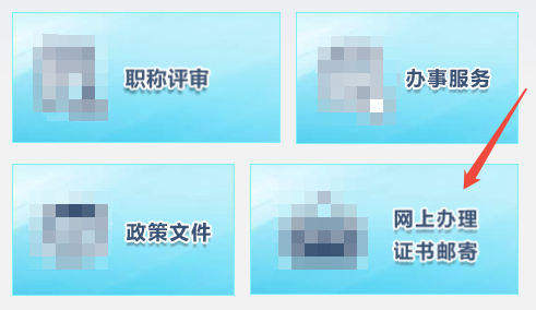 入口一:天津市人力资源和社会保障局网站天津人事考试版块,点击页面右侧“网上办理证书邮寄”,复制网址到浏览器地址栏打开。