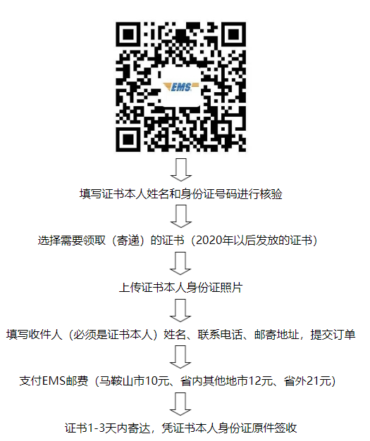 马鞍山市人事考试合格证书网上领取(EMS邮寄)服务办理流程