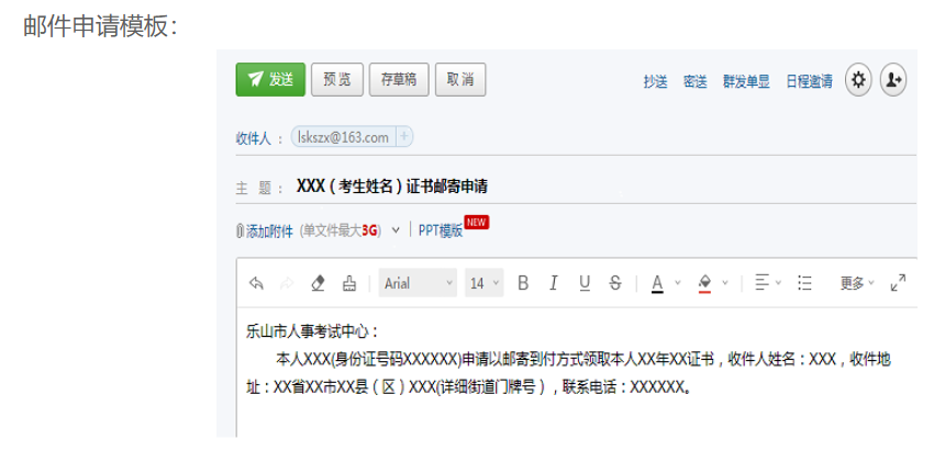 如需邮寄领取,请将本人手持身份证照片及领证申请发送至乐山市人事考试中心电子邮箱,并来电告知申请办理。