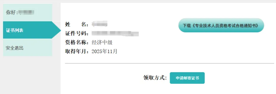 2025年初中级经济师证书电子证书下载: