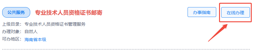 (2)找到办事栏目——搜索“专业技术人员职业资格证书邮寄”——选择“省本级”确定——办理——按要求填报邮寄申请信息;