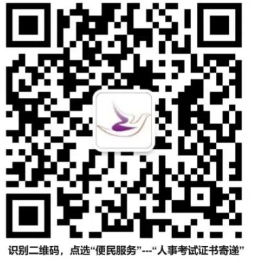 一、邮政EMS(免费,2-3天送达)。考生本人用微信搜索“政驿”公众号,点击下方“便民服务”菜单选择“人事考试证书邮寄”。邮政客服电话:周经理,17751970138。