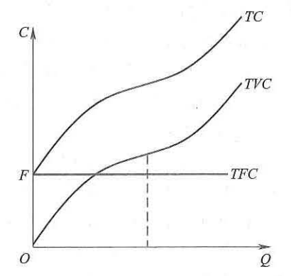 1、图示 图示中TC为总成本曲线、TVC为总可变成本曲线、TFC总固定成本曲线。 |