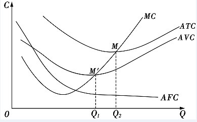 MC:边际成本曲线:每增加一单位产量所增加的总成本。