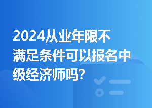 从业年限不满足条件不可以报名中级经济师,必须达到规定的工作年限才能报名,否则报名审核不通过。插入模块不同学历报考中级经济师年限要求1、高中学历:工作10年,并取得初级经济专业技术资格;2、大专学历:6年工作年限3、本科学历:4年工作年限4、有第二学士学位或研究生班毕业:2年工作经验5、硕士学位:1年工作经验6、博士学位:不需要工作经验中级经济师报名工作年限如何计算?从事相关工作年限要求是指取得规定学历前、后从事本专业工作时间的总和,其计算截止日期为报考当年12月31日。即计算到2024年12月3查看更多>