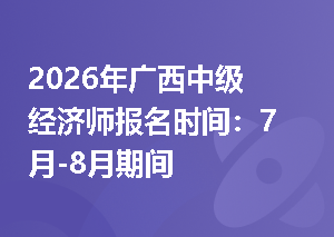 2026年广西中级经济师报名时间:7月-8月期间,报名周期一般为10天左右。报名采用网上报名、网上缴费的方式,注册登录中国人事考试网进行网报名。点击进入>>2026年广西中级经济师报名入口扫码即可预约经济师报名/考试时间↓↓广西中级经济师报考指南一、广西每年中级经济师报名时间年份报名时间考试时间2026年7月-8月期间11月7日-8日2025年7月28日-8月7日11月1日-2日2024年8月16日-26日11月16日-17日2023年7月28日-8月10日11月10日-11日202查看更多>