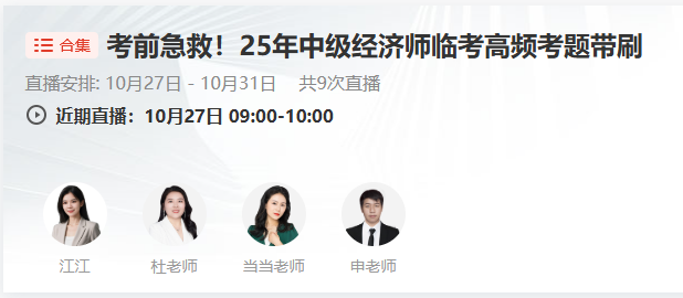 10月28日09:00 | 2025年《中级经济基础》高频真题带刷(二) | 直播入口 | |