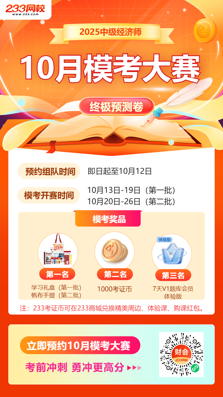 4、10月模考大赛:由233网校教研团队精心打造,通过研究整理近5年历年考题来总结命题方向,为大家筛选的终极预测卷,并且有各种奖品等着你!一共2期,赶快来PK看看你的实力吧!第一期结束后,还有主讲老师为大家专门讲解试卷解析!立即进入模考大赛详情页>>